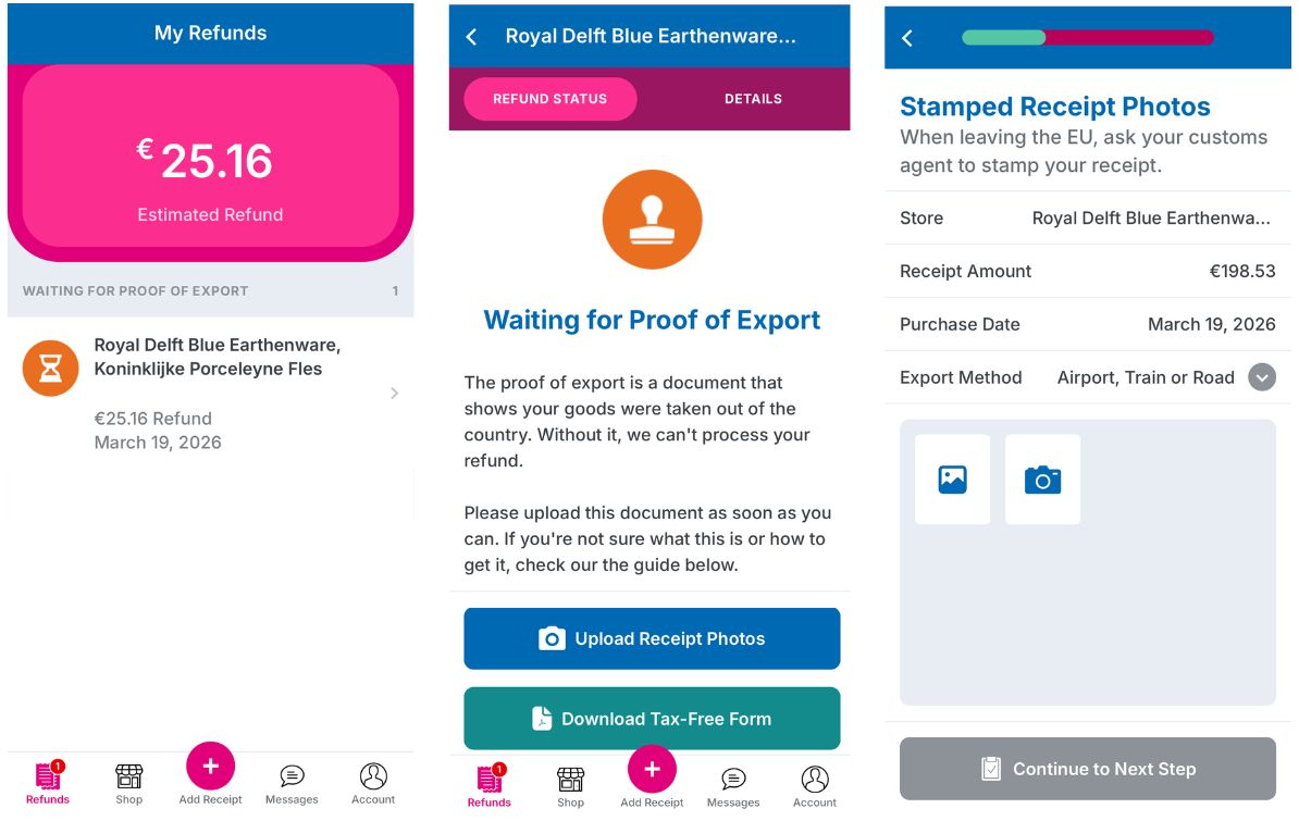 🕹️ The digital proof of export from Dutch customs (for Dutch receipts) will automatically be registered in our system, initiating the refund process.